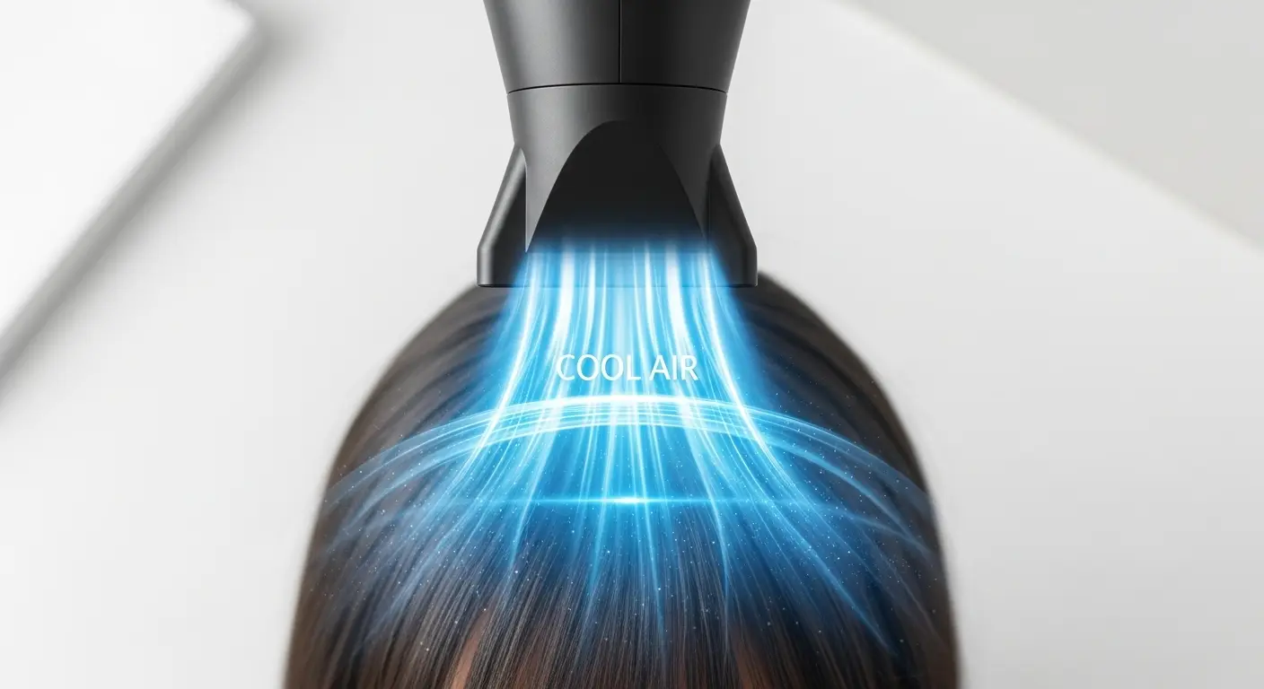 前髪の根元を正しく濡らしたら、いよいよドライヤーの出番です。ここで重要なのは、ただ乾かすのではなく、「温風」で癖をリセットし、「冷風」で形を固定するという、プロが行うブローの基本原則を守ることです。