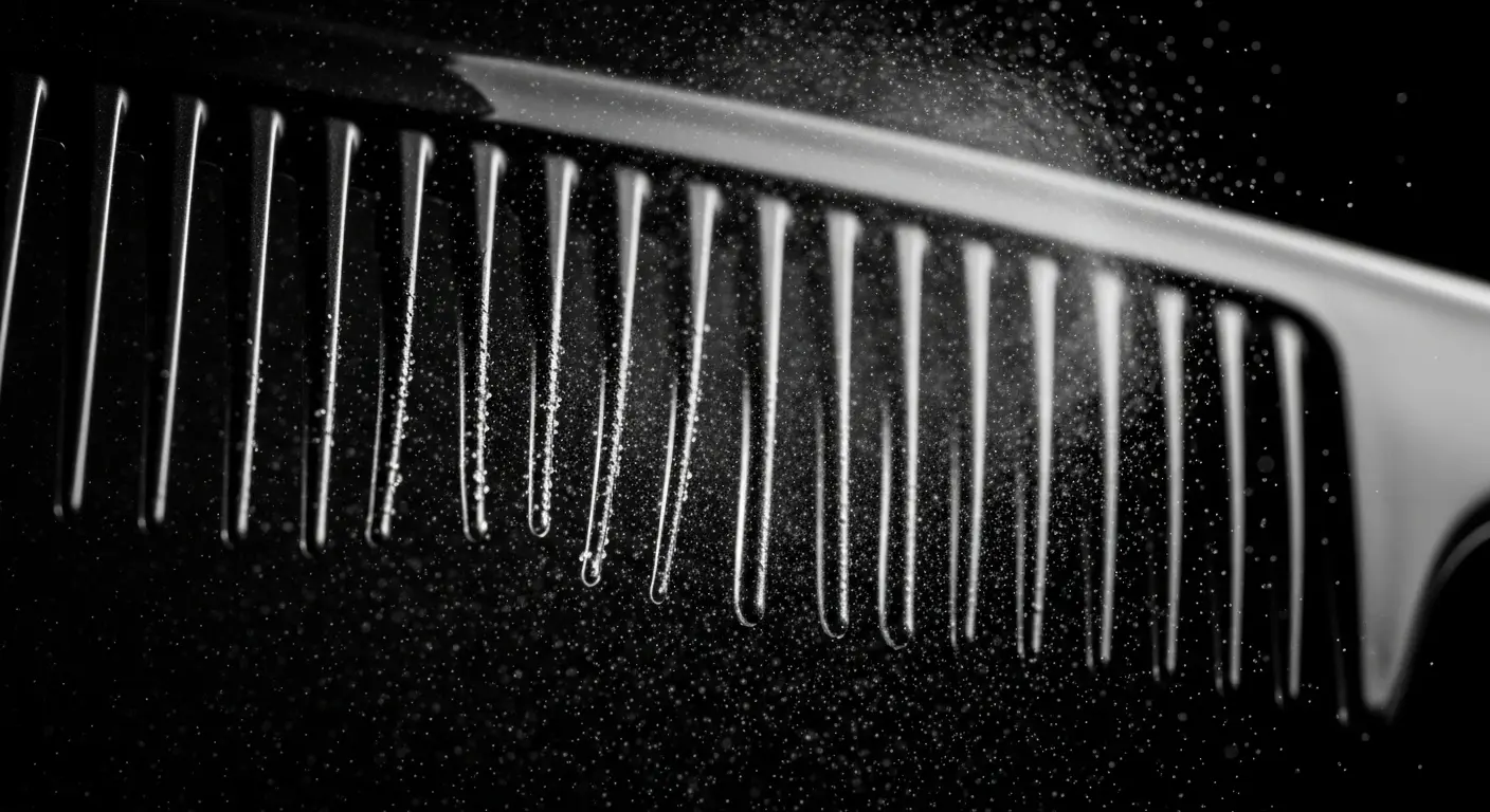 プロが実践するテクニックは、「くし(コーム)にスプレーを吹きかける」という方法です。まず、目の細かいコームにハードスプレーをシュッと吹きかけます。そして、そのコームで前髪の内側と外側から優しくとかすようにして、スタイリング剤を均一になじませます。