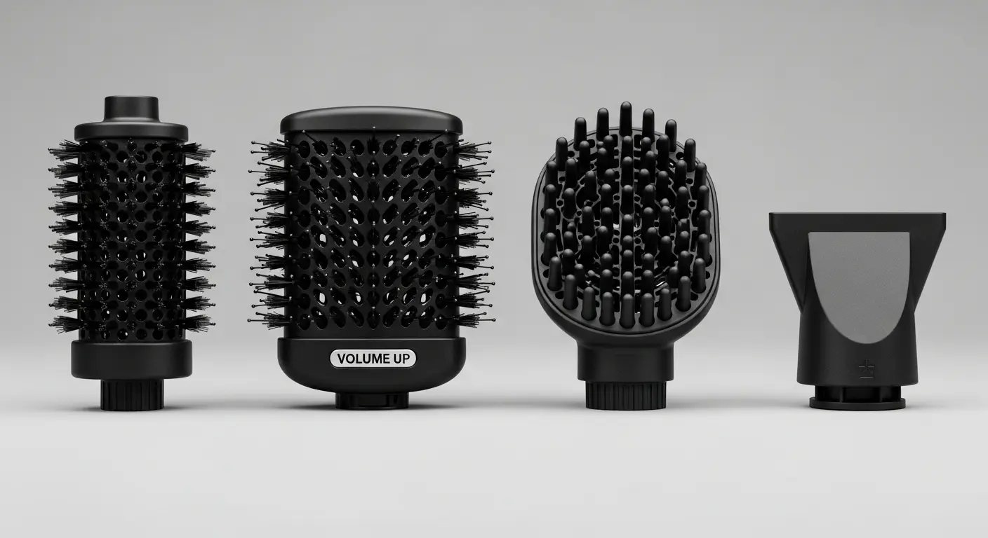 くるくるドライヤーは、本体に付け替える「アタッチメント」によって、仕上がりが大きく変わるのが特徴です。特に巻き髪スタイルを目指す場合、どのブラシを選ぶかが非常に重要になります。