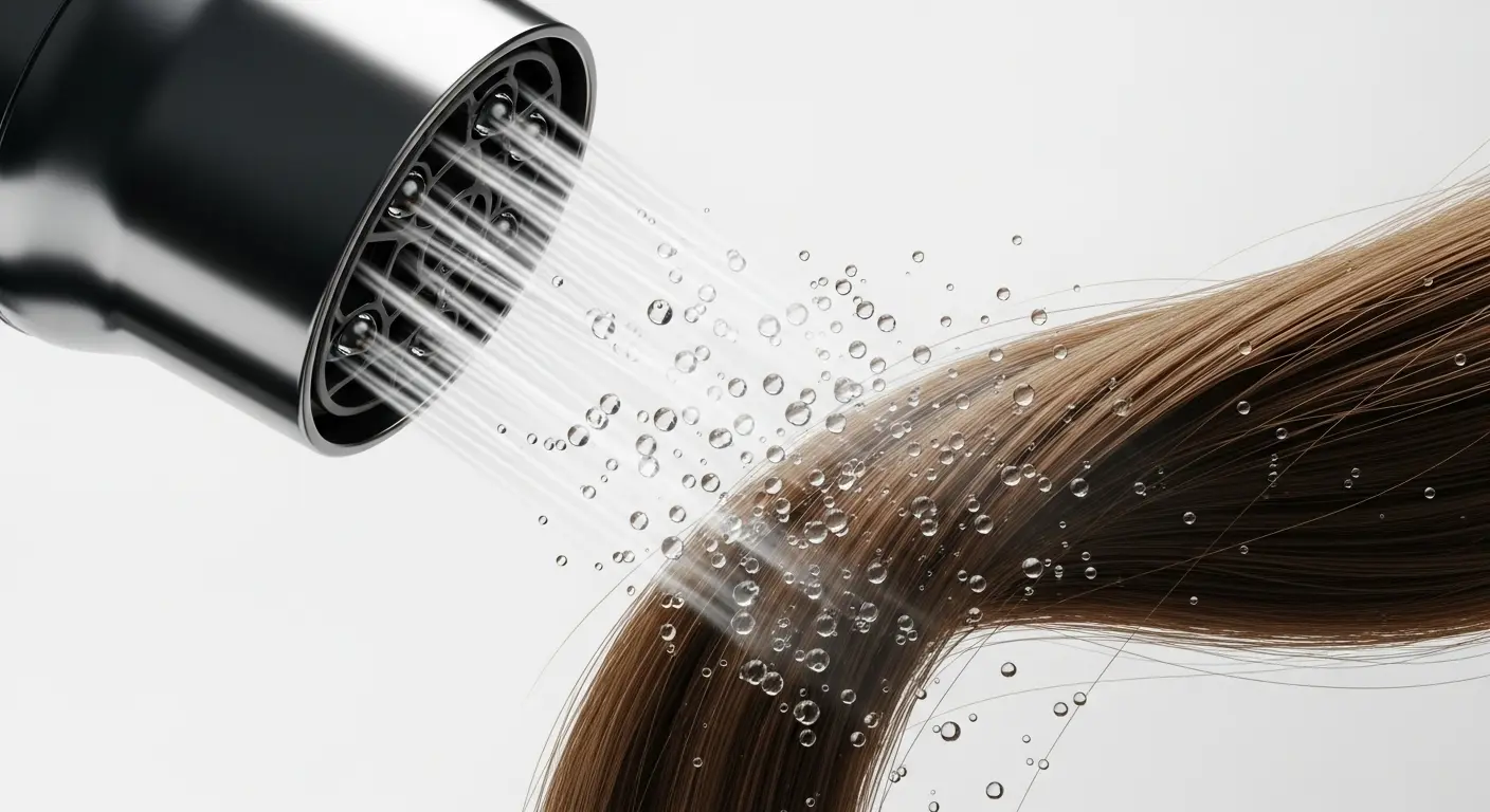 1. 物理的な水分除去: 強力な風が、髪の表面に付着している水滴を直接吹き飛ばします。