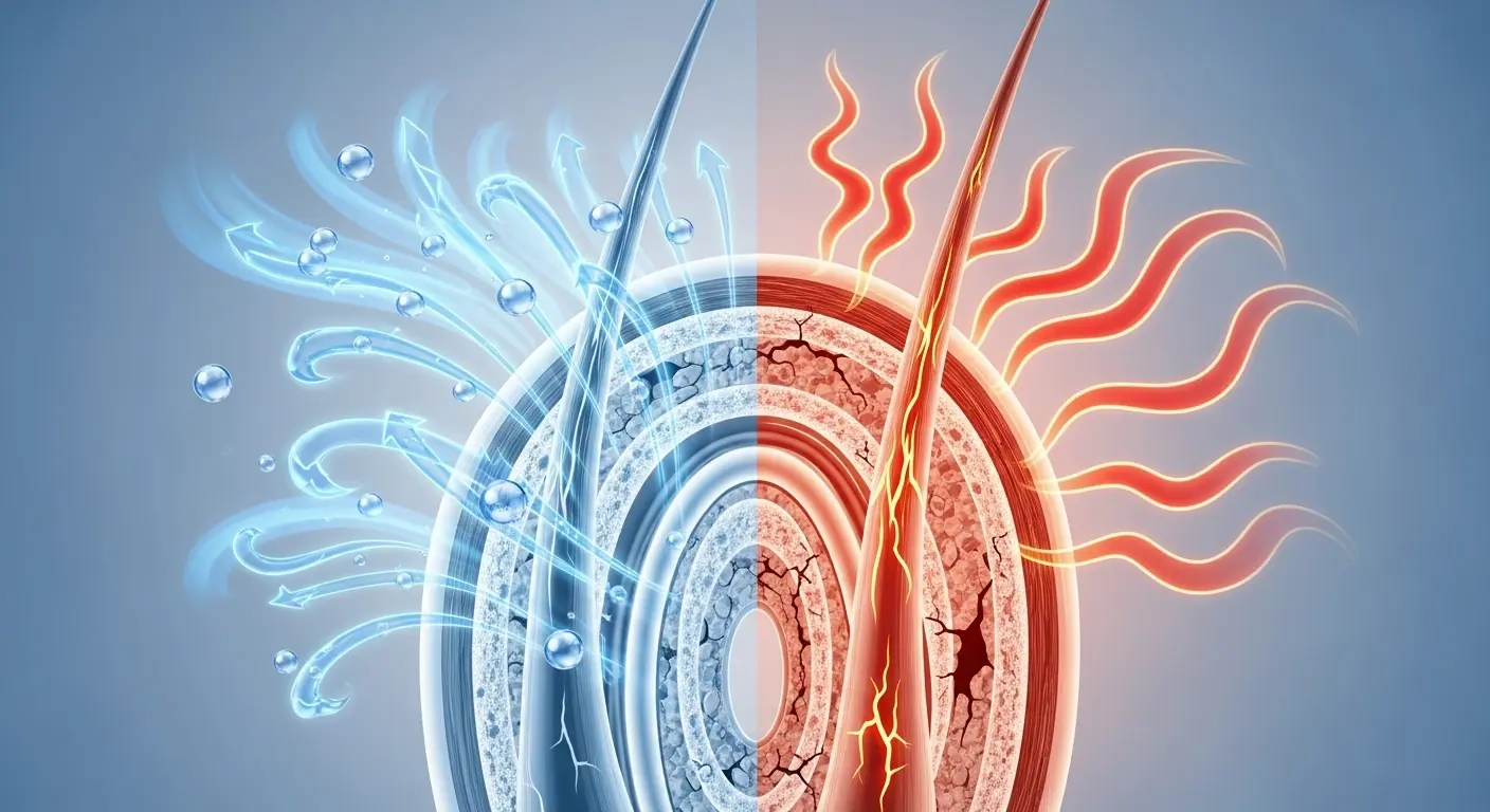 Turboモードは速乾性に優れる一方で、「強い風が髪に悪いのでは?」という懸念も聞かれます。これは半分正しく、半分は誤解です。使い方を誤れば、Turboモードの強力な風は髪を傷める原因となり得ます。そのダメージの仕組みは、主に「熱」と「摩擦」の2種類に分けられます。