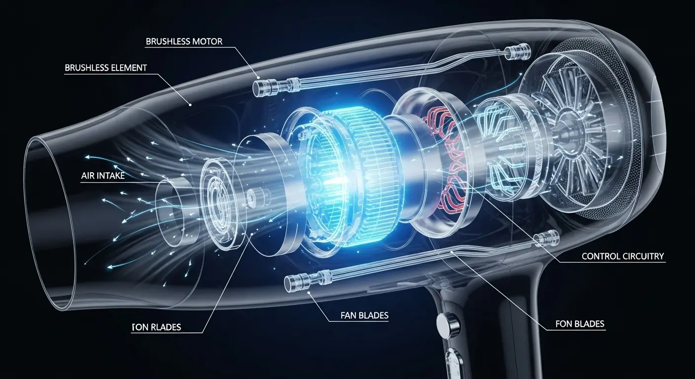 では、ドライヤーを10年以上使い続けることは不可能なのでしょうか?答えは「いいえ」です。その鍵を握るのが、「ブラシレスDCモーター(BLDCモーター)」という先進技術です。このモーターは、その名の通り、寿命の原因であった「ブラシ」を電子回路に置き換えることで、物理的な接触と摩耗をなくした画期的なモーターです。