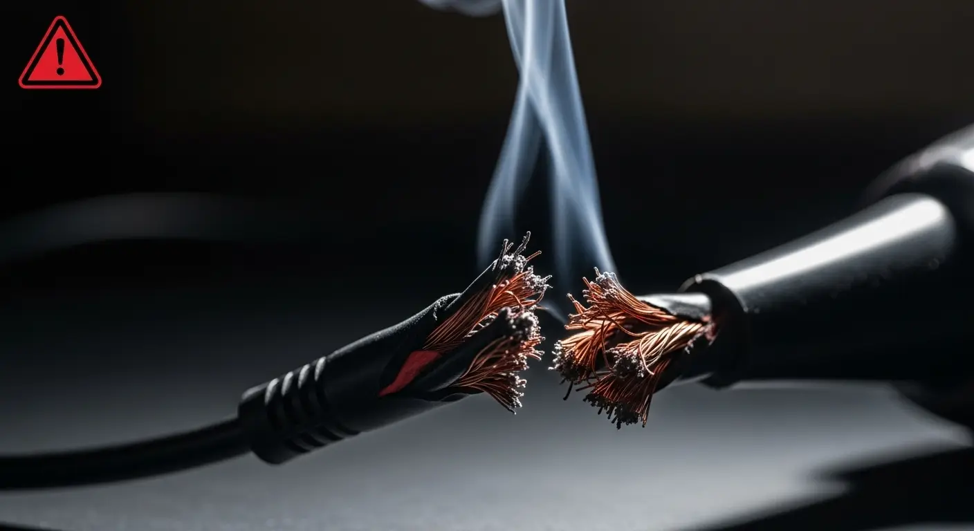 最も注意すべきは、やはり電源コードの内部断線です。コードを本体に巻きつけて保管する習慣があると、根元部分に繰り返し負荷がかかり、内部の細い銅線が少しずつ切れていきます。この「半断線」状態のまま使用すると、電気が流れる部分が狭くなるため異常発熱し、コードの被膜が溶けてショート。最終的には火花が散って発火し、周囲の可燃物に燃え移るという重大事故につながります。