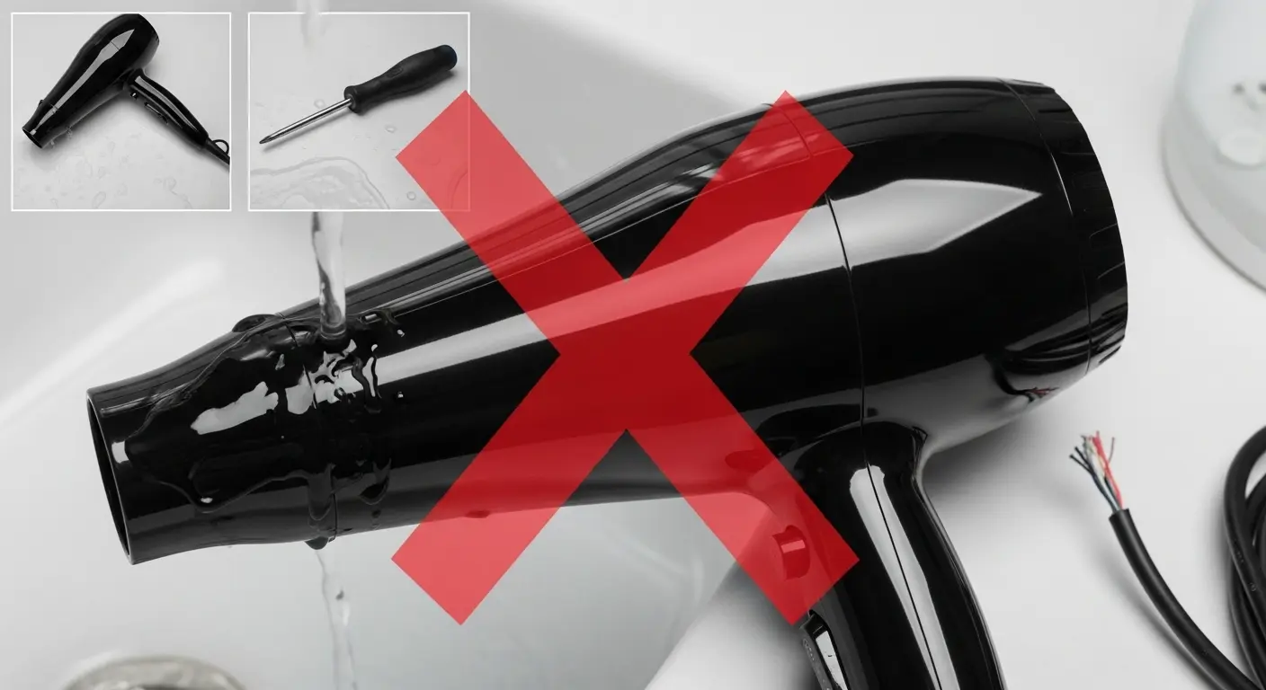 ドライヤーを落下させた、水に濡らした、コードを無理に引っ張って断線させたなど、使用者の不注意による破損や故障。 - 不当な修理や改造