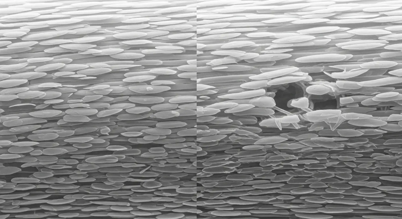 さらに、髪の内部にはCMC(細胞膜複合体)と呼ばれる、水分や油分を保持するための重要な組織があります。熱ダメージや化学的な処理はこのCMCも破壊し、髪が水分を保つ力(水分保持力)そのものを奪ってしまいます。