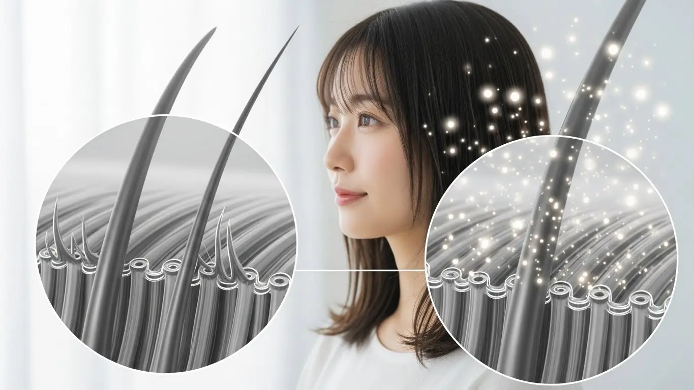 これらの最新技術は、空気中の水分を結露させて微細なイオンを作り出し、風と共に髪に届けることで、乾燥してめくれ上がったキューティクルを落ち着かせ、密着させる効果があります。キューティクルが綺麗に整うと、髪の表面が滑らかになり、髪同士の摩擦係数が劇的に低下します。つまり、毎日のブラッシングや、就寝時の枕とのこすれによる物理的なダメージを受けにくくなるのです。