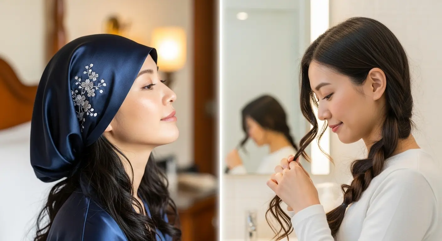 ナイトキャップは、髪全体を帽子で覆い、寝具との摩擦を物理的に遮断する最も強力な方法です。特にシルク(絹)素材のナイトキャップは、摩擦を最小限に抑えるだけでなく、キャップ内の湿度を適度に保つ効果があり、髪の乾燥や広がりを防ぎます。寝癖がつきにくくなるため、翌朝のスタイリング時間も短縮できます。