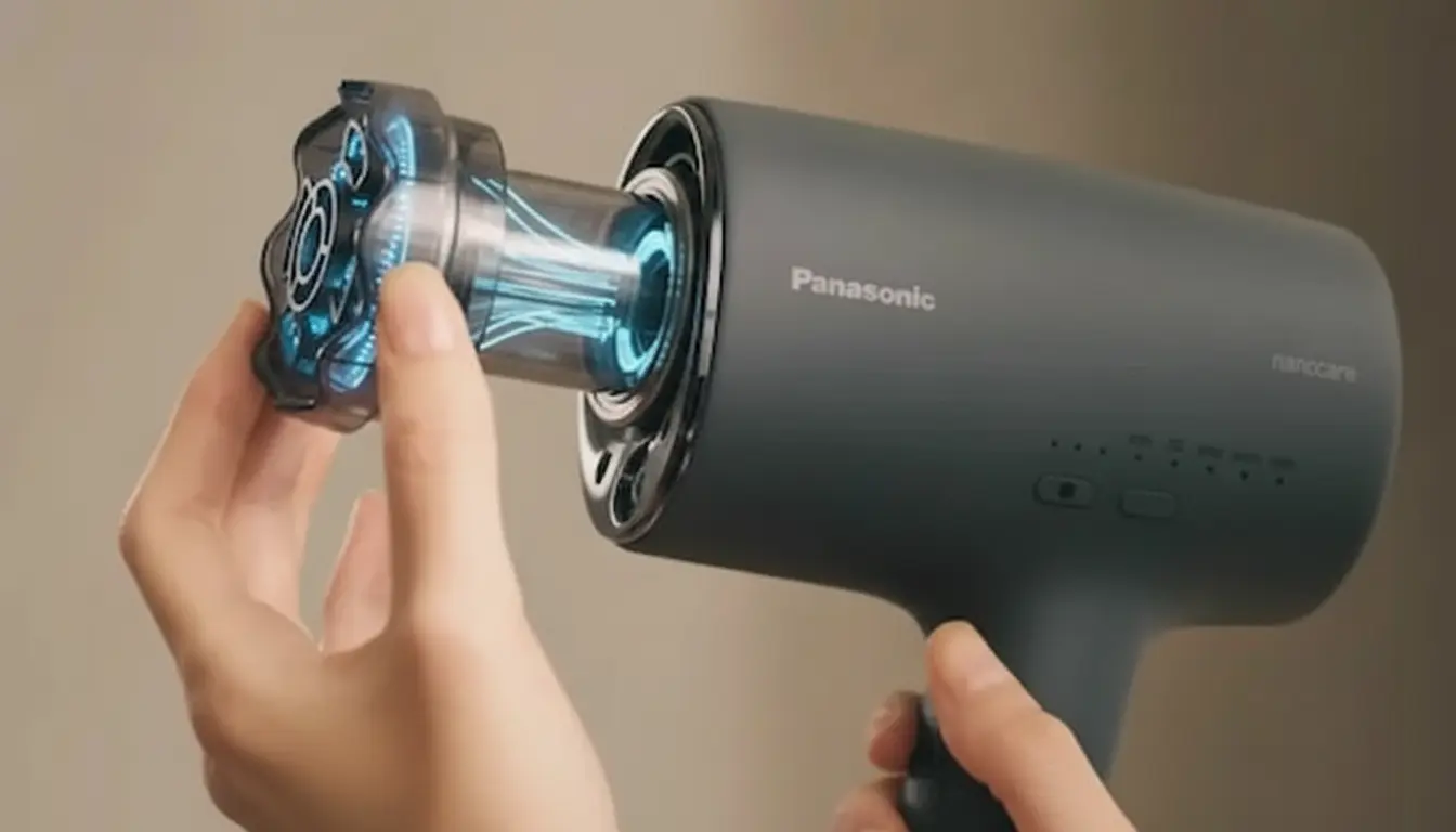 代表的な例が、パナソニックのヘアードライヤー「ナノケア」シリーズに搭載されている「ナイトキャップノズル」です。この「ナイトキャップノズル」は、従来の速乾ノズルとは異なり、髪が7割程度乾いた状態の仕上げに使用します。