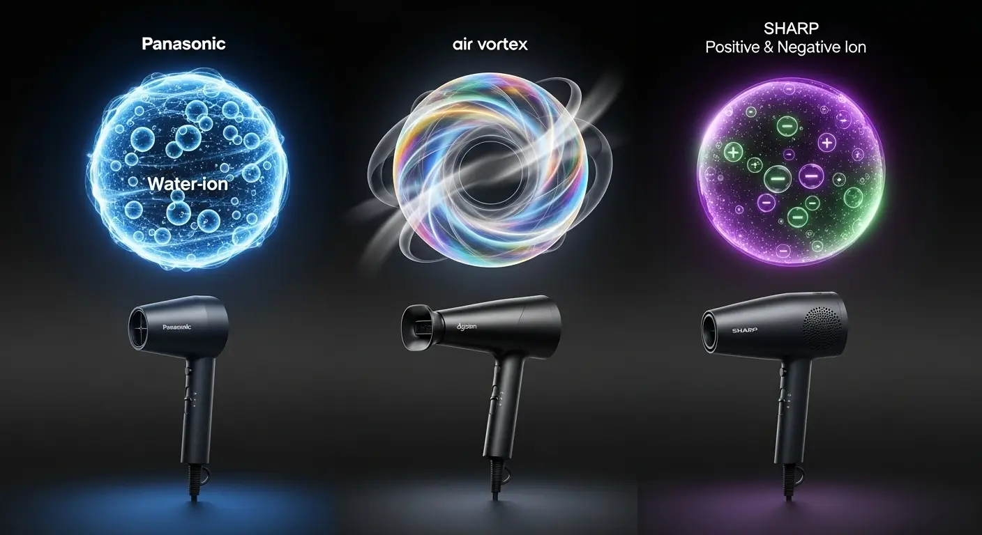 ドライヤー市場は技術革新が著しく、「ただ乾かす」だけの時代は終わりました。各メーカーが独自の最先端技術を投入し、「美髪を育む」ための美容機器へと進化しています。しかし、専門用語が並ぶ製品説明だけを見ても、自分に何が合うのか分からないという方も多いでしょう。ここでは、国内で特に人気の高い3大メーカー(パナソニック、ダイソン、シャープ)の独自技術を比較し、あなたの髪の悩みに最適な一台を見つけるお手伝いをします。