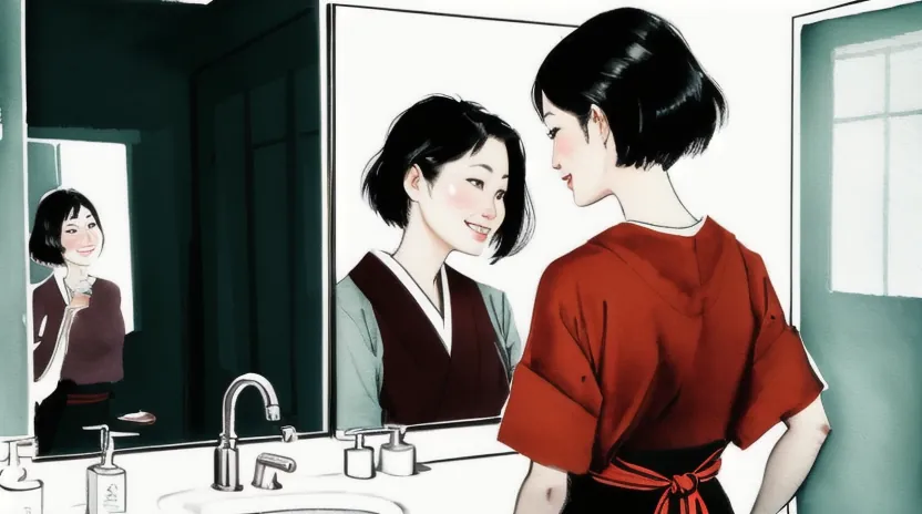 次に重要なのが「視界の確保」です。洗面所の鏡だけでは後ろ髪の全体像、特に襟足のラインを正確に把握することは不可能です。ここで必要となるのが「三面鏡」もしくは「大きめの手鏡」を組み合わせた合わせ鏡のセットアップです。