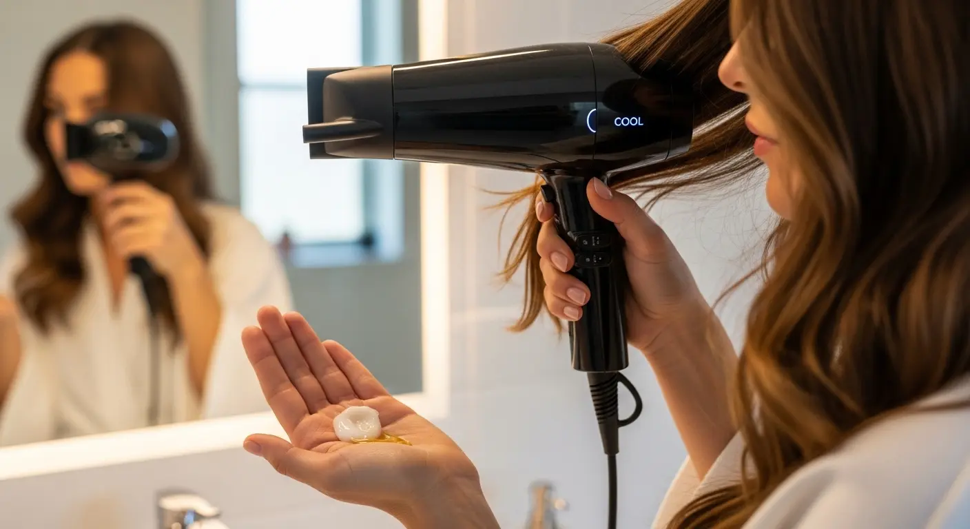 - 仕上げの冷風はキューティクルを引き締め、スタイルを固定する