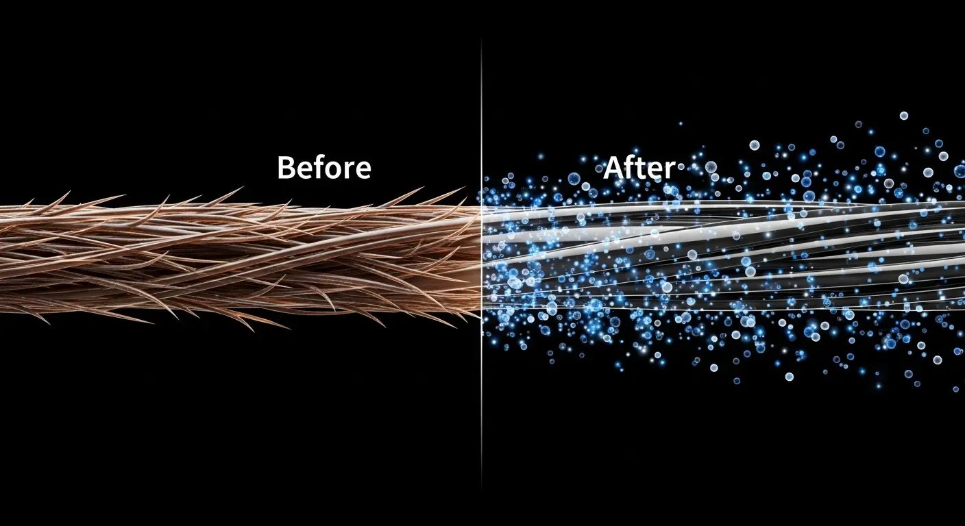 パーマヘアは、すでに薬剤によって髪の内部構造が変化しており、非常にデリケートな状態です。そこに、毎日高温のドライヤーを当て続けると、髪のタンパク質が熱によって変性してしまう「タンパク質変性」が起こります。これは生卵がゆで卵になるのと同じ不可逆な変化で、髪が硬くなり、ツヤを失い、最終的にはチリチリになってしまいます。