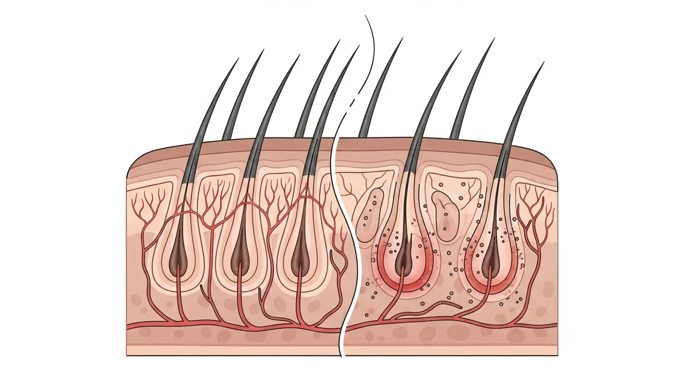 髪を乾かさないことのリスクは、髪のダメージだけにとどまりません。むしろ、見過ごされがちな「頭皮環境の悪化」こそが、深刻な問題を引き起こすのです。髪を洗った後の頭皮は、水分と体温によって暖かく湿った状態になっています。この環境は、雑菌、特にカビの一種である常在菌が繁殖するのに最適な条件なのです。これらの雑菌が異常繁殖すると、皮脂を分解して不快な臭いの原因となるガスを発生させたり、頭皮に刺激を与えてかゆみやフケを引き起こしたりします。