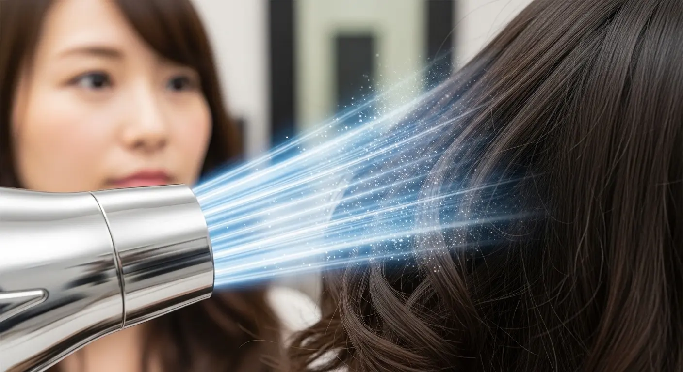 ドライヤーの「冷風(クールショット)」機能は、単なるクールダウンのためだけにあるわけではありません。これは、ヘアセットを一日中持続させるための、科学的に重要なステップです。